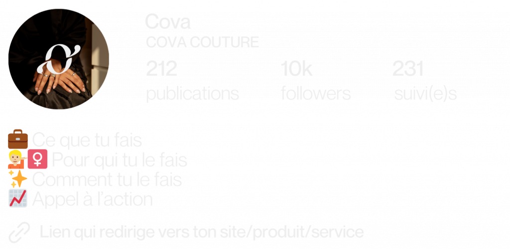Ta bio, c’est ta carte de visite. Si elle est floue, tout le reste s’écroule. Et en plus, la bio contient des mots clés, un peu comme un SEO, donc optimise la au MAXIMUM.